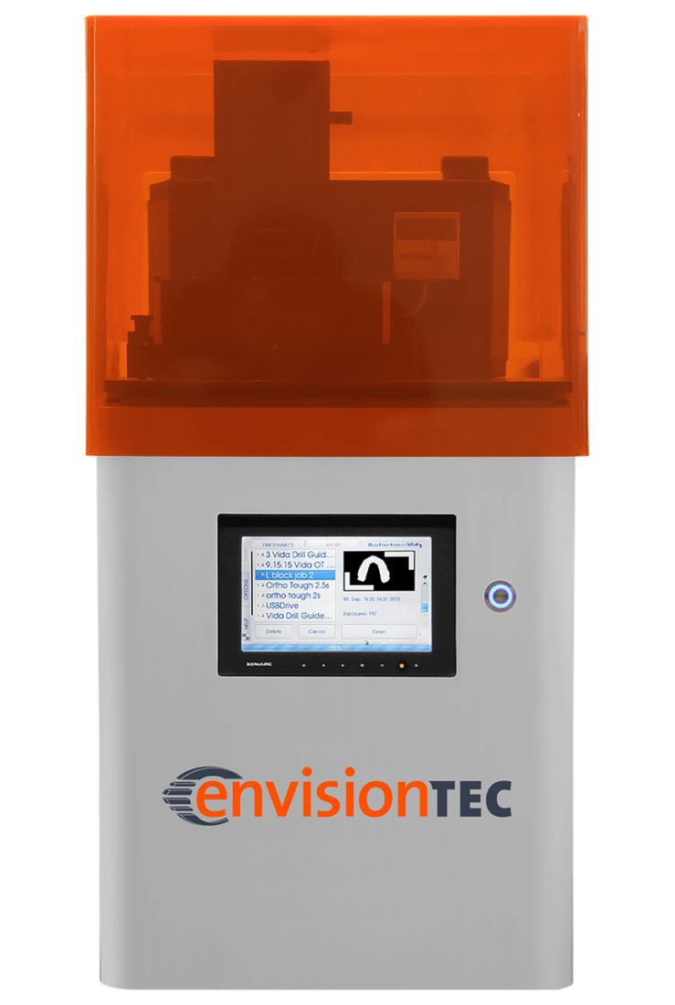 Der Vida HD C&B verfügt über einen hochauflösenden Projektor mit einer Auflösung von 1920 x 1080 Pixel und einer kundenspezifischen UV-Optik, die speziell für Kronen- und Brückenmaterialien optimiert wurde. Sobald der Druckauftrag auf einem Computer mit der Perfactory-Software-Suite vorverarbeitet wurde, wird er über Ethernet oder USB an die Maschine übertragen und kann unabhängig voneinander laufen, ohne dass eine kontinuierliche Verbindung zum vorverarbeitenden Computer erforderlich ist.